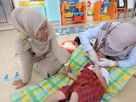 วัน อังคาร ที่ ๑๙ มีนาคม ๒๕๖๗ เวลา ๐๙.๐๐ น. นายวสันต์ แวอุเซ็ง นายกเทศมนตรีตำบลแว้ง มอบหมายให้ นางวินันยา มังคลาทัศน์ รองนายกเทศมนตรีตำบลแว้ง พร้อมด้วย นางซัลมา อารง ผู้อำนวยการกองการศึกษาได้เข้าร่วมสังเกตการณ์ การเคลือบฟลูออไรด์ในกลุ่มเด็กก่อนวัยเรียน จำนวน ๒๖ ราย ณ ศูนย์พัฒนาเด็กเล็กเทศบาลตำบลแว้ง โดยคณะจากกลุ่มงานทันตกรรมโรงพยาบาลแว้ง
