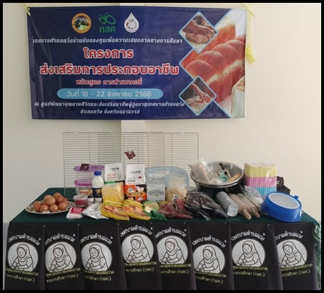 #กองทุนเพื่อความเสมอภาคทางการศึกษา (กสศ.) และเทศบาลตำบลแว้งได้มอบอุปกรณ์ ส่งเสริมอาชีพ ให้กับกลุ่มอาชีพเทศบาลตำบลแว้งเพื่อสนับสนุนอาชีพการทำเบเกอรี่โดยมี นางอลิษา ราหู เป็นวิทยากร