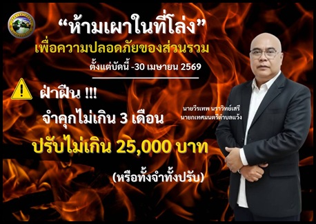 ขอความร่วมมือประชาชนให้งดเว้นการเผาในที่โล่งทุกชนิด ขอความร่วมมือ #ห้ามเผาในที่โล่งทุกกรณี ถึง 30 เม.ย. นี้ ฝ่าฝืนโทษสูงสุดคุก 3 เดือน ปรับ 25, 000 บาทอ่านเพิ่มเติม...